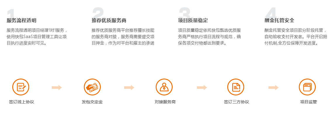 雇主预付订金,平台为雇主提供优质靠谱服务,提高项目交付率